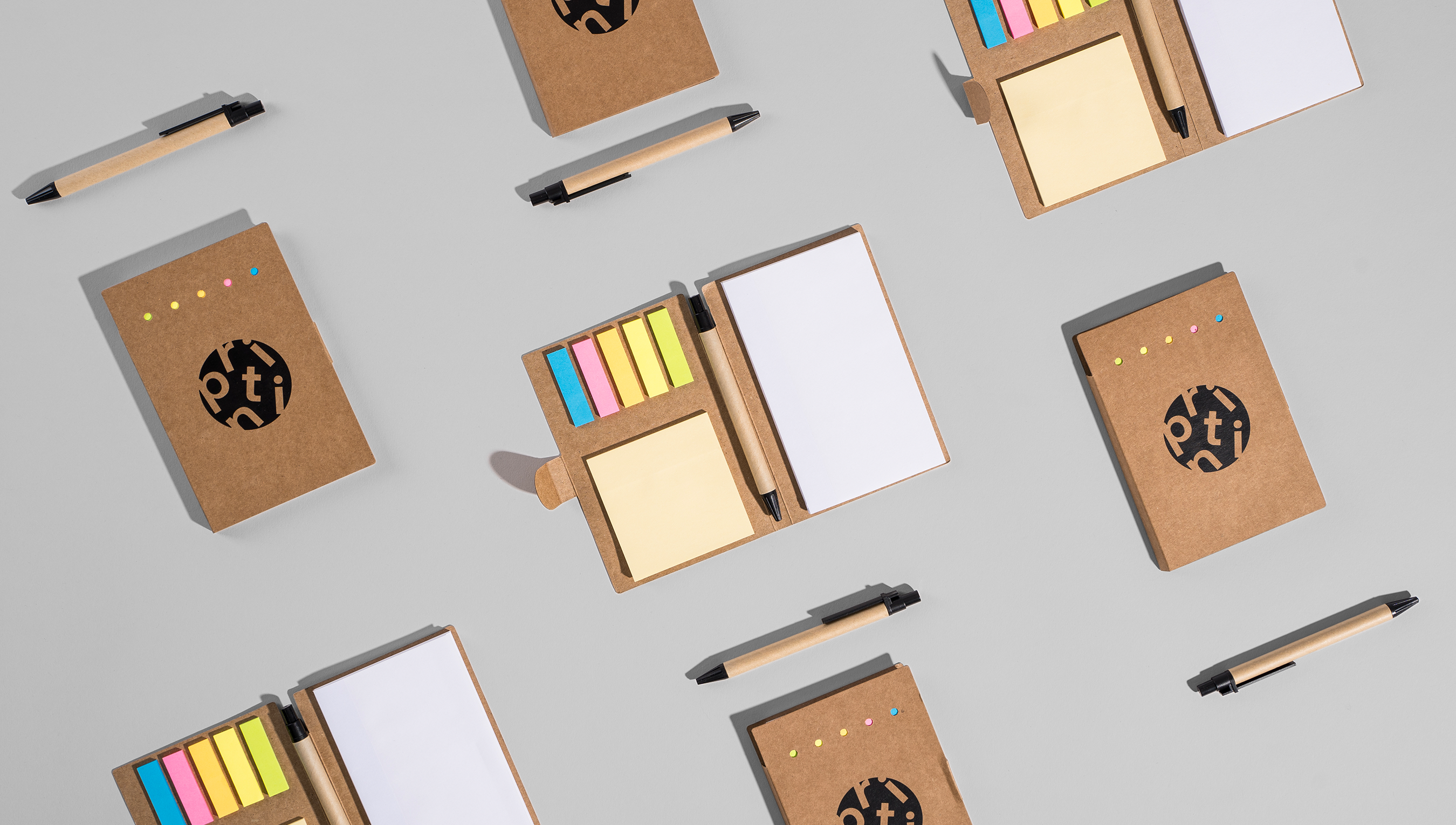 Blocos de Notas Autoadesivas Cooper com Caderno: organização prática e elegante. Ideal para anotações, estudos e brindes corporativos!