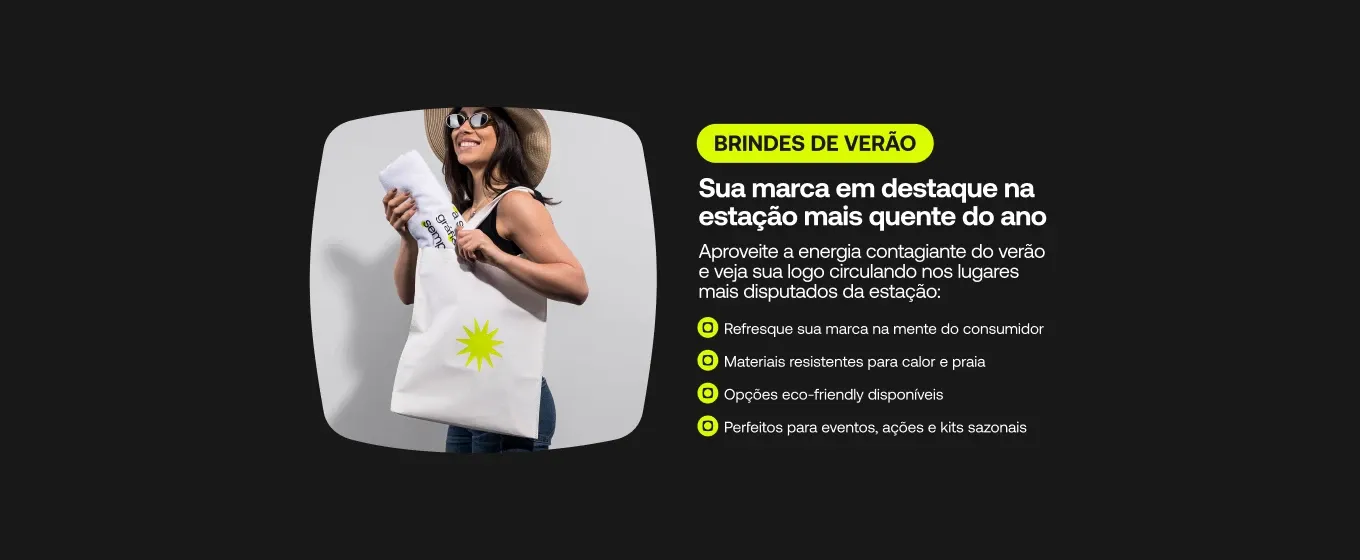 Brindes personalizados ideais para o verão! Viseiras, toalhas, bolsa térmica, copos e acessórios para praia. Perfeitos para ações promocionais, eventos e campanhas sazonais.