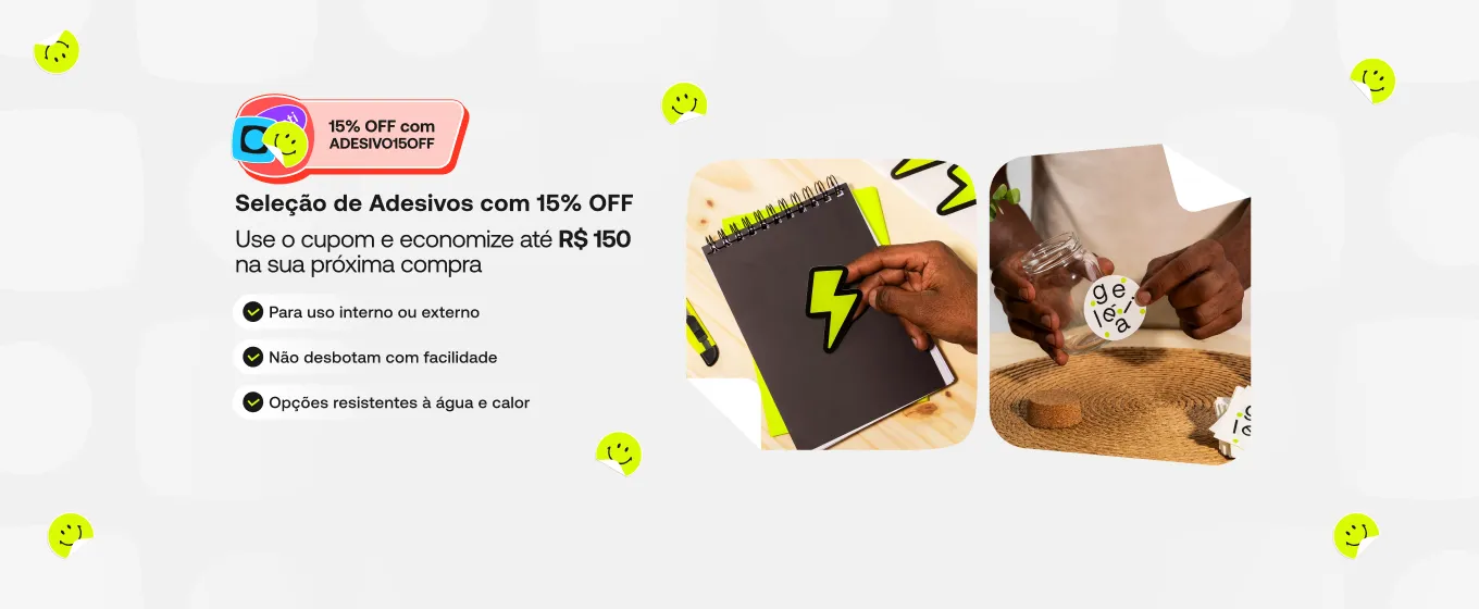 Aproveite 15% OFF em adesivos selecionados no Mês do Consumidor. Válido para compras acima de R$300.