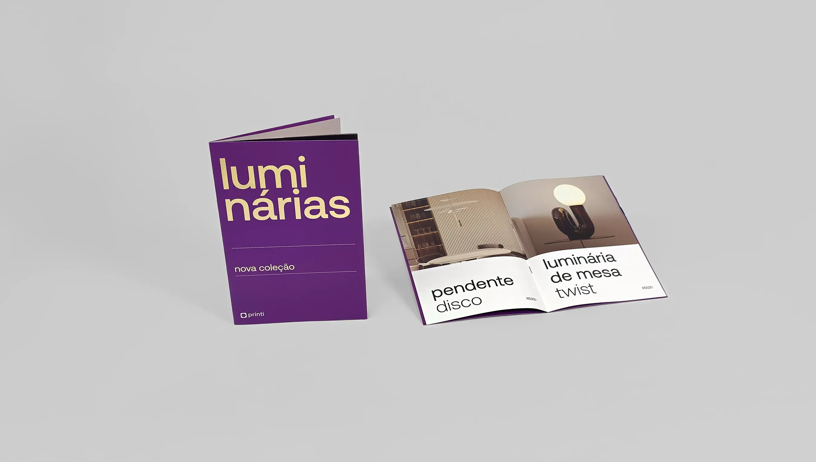 Catálogos com acabamento metálico em hot stamping para lançamentos de produto ou apresentações institucionais.