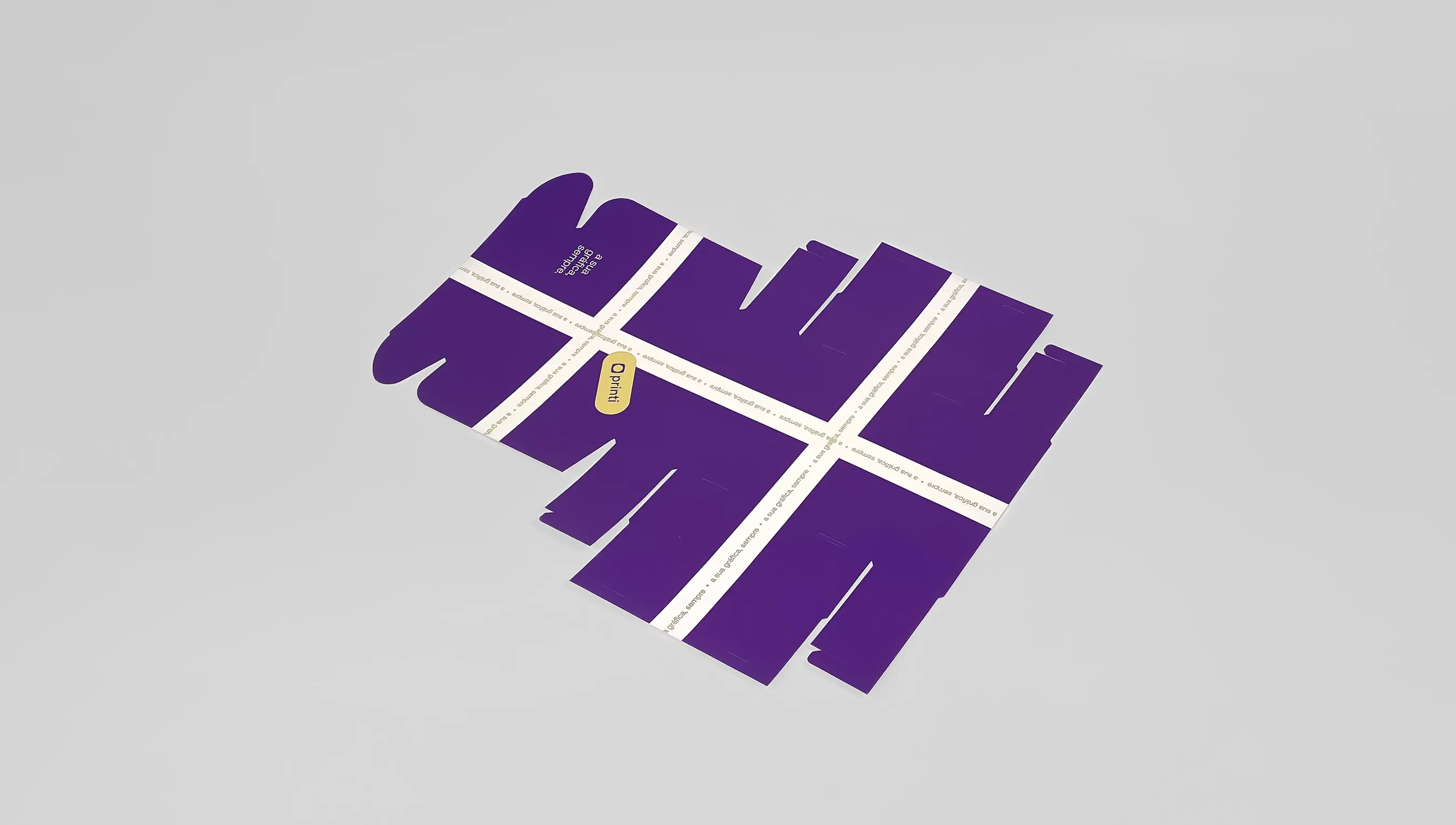 A caixa conta com acabamento corte-vinco, essencial para a estrutura da embalagem. O corte-vinco define o formato, com dobras e encaixes, garantindo um acabamento profissional.