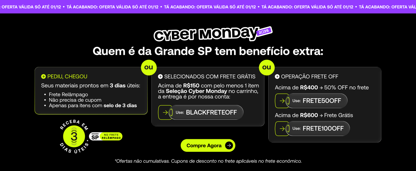 Itens selecionados com frete grátis para você aproveitar ainda mais a Cyber Monday aqui na Printi.