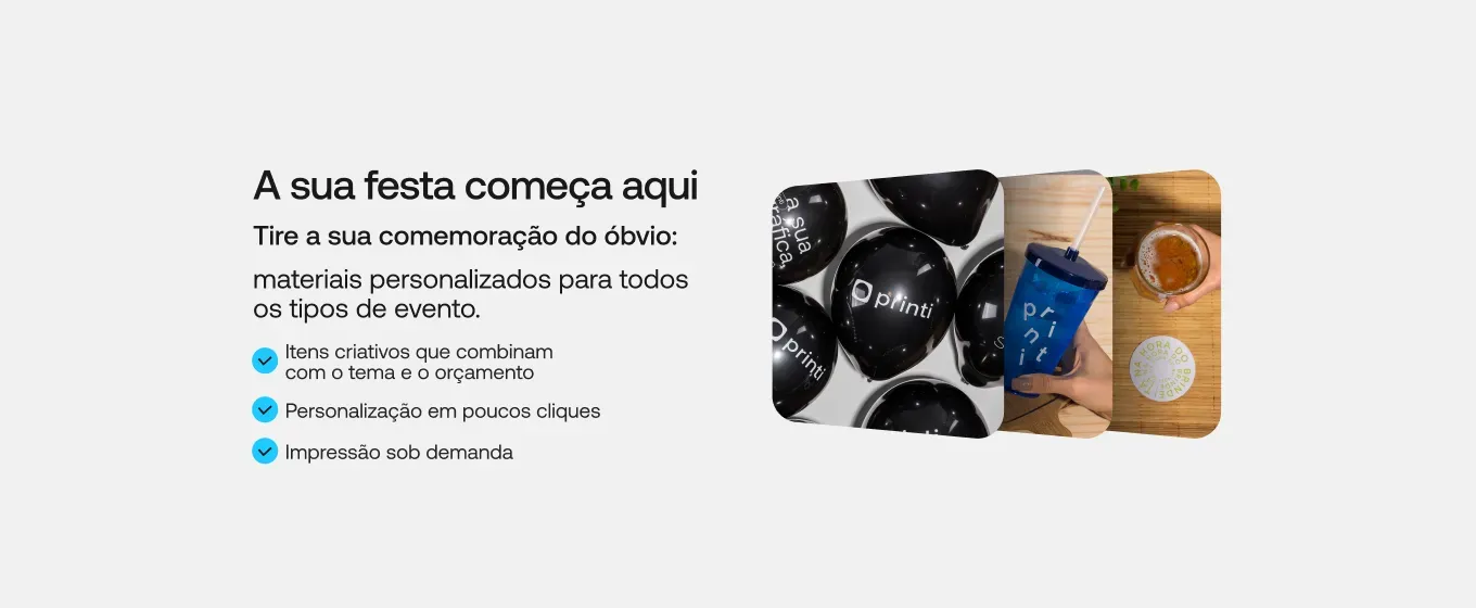 Após concluir a compra, você poderá personalizar seus produtos. Na Printi, oferecemos várias opções de personalização: envie sua própria arte, contrate um designer Printi, ou experimente a Printi AI, a inteligência artificial da Printi.