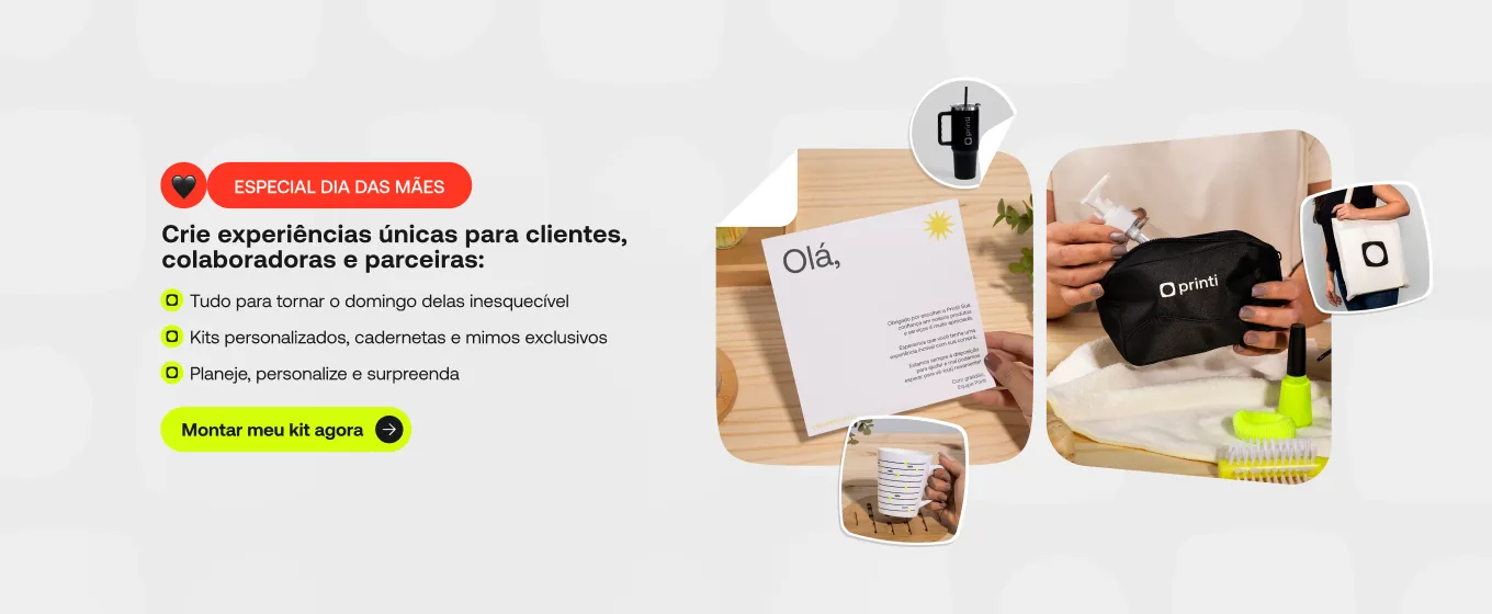 Tudo para o Dia das Mães em um só lugar: brindes personalizados, kits corporativos e materiais gráficos sob medida.