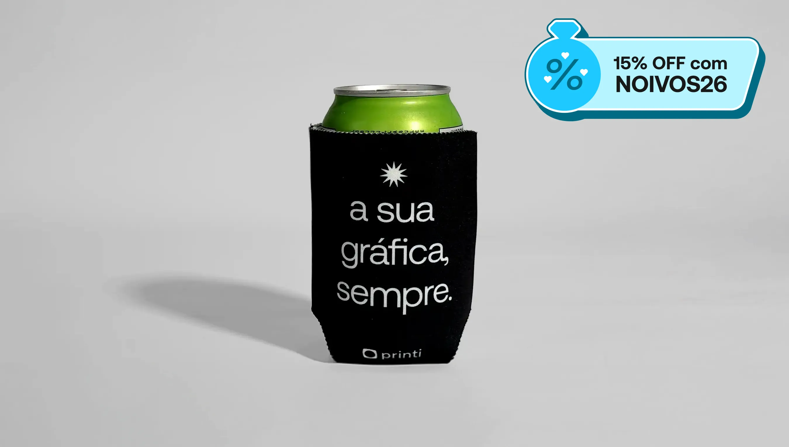 Divulgue sua marca de forma criativa com um porta lata personalizado.