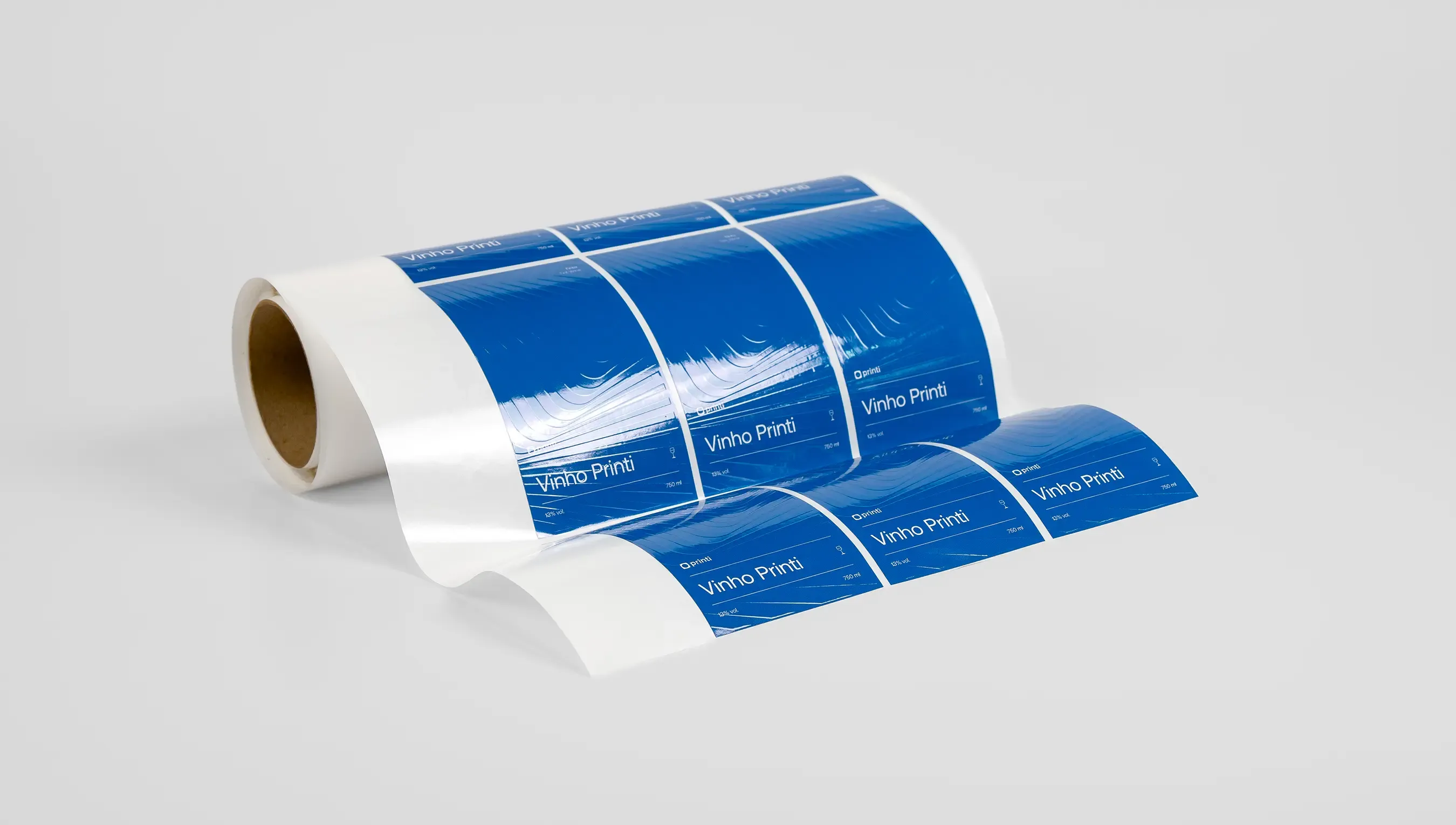 Rótulos com acabamento brilhante em verniz para garrafas de vinho.