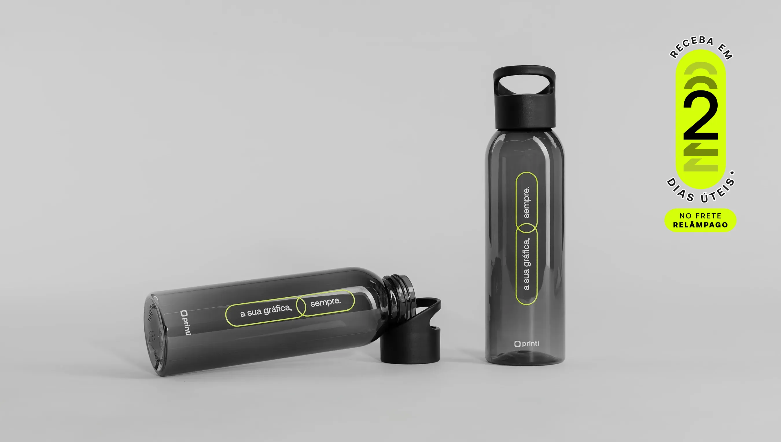 Garrafa resistente e elegante com acabamento fumê, ideal para brindes ou uso diário. *Confira as condições de entrega na descrição abaixo.