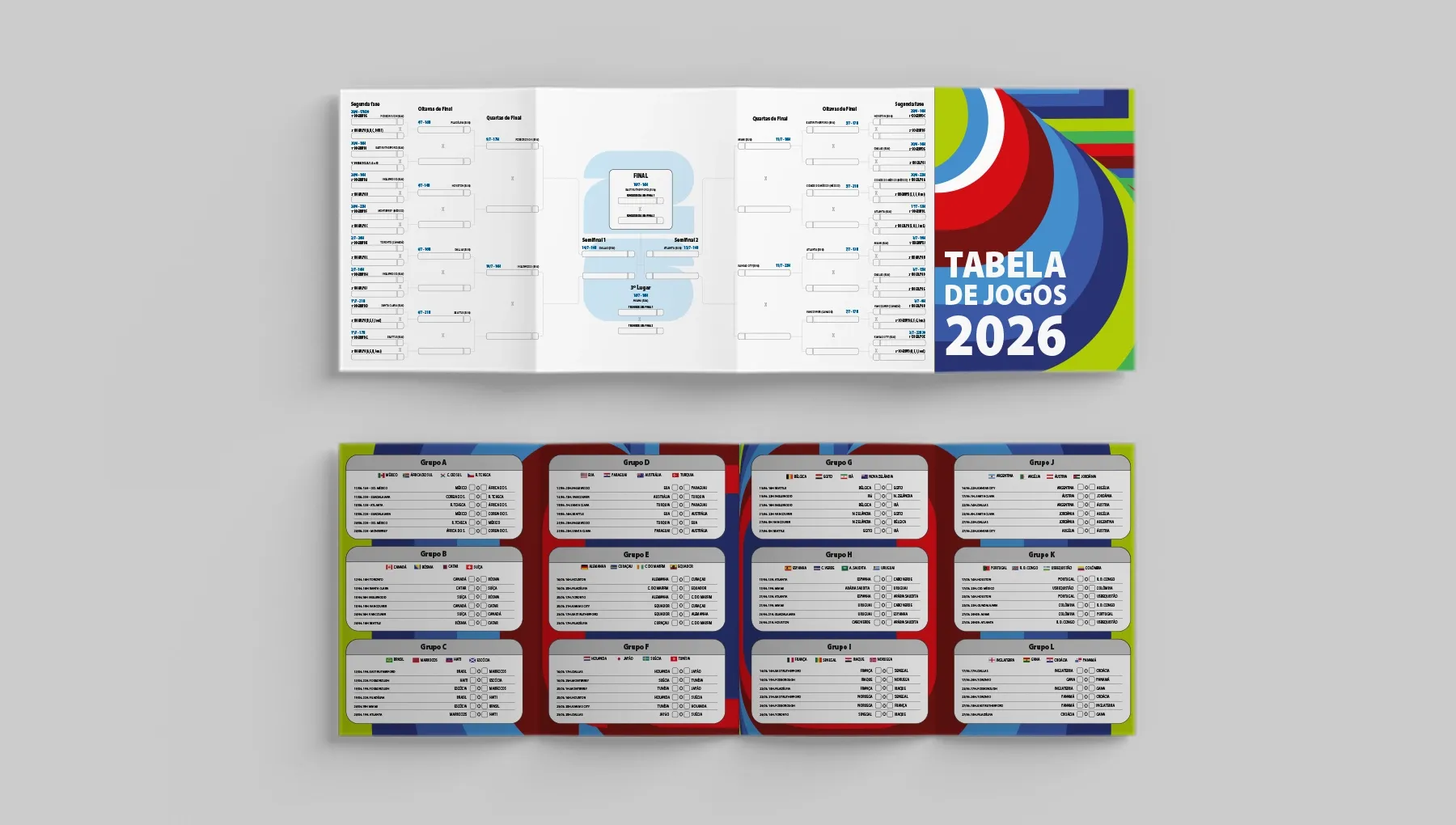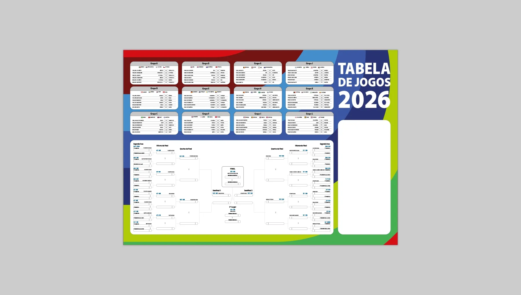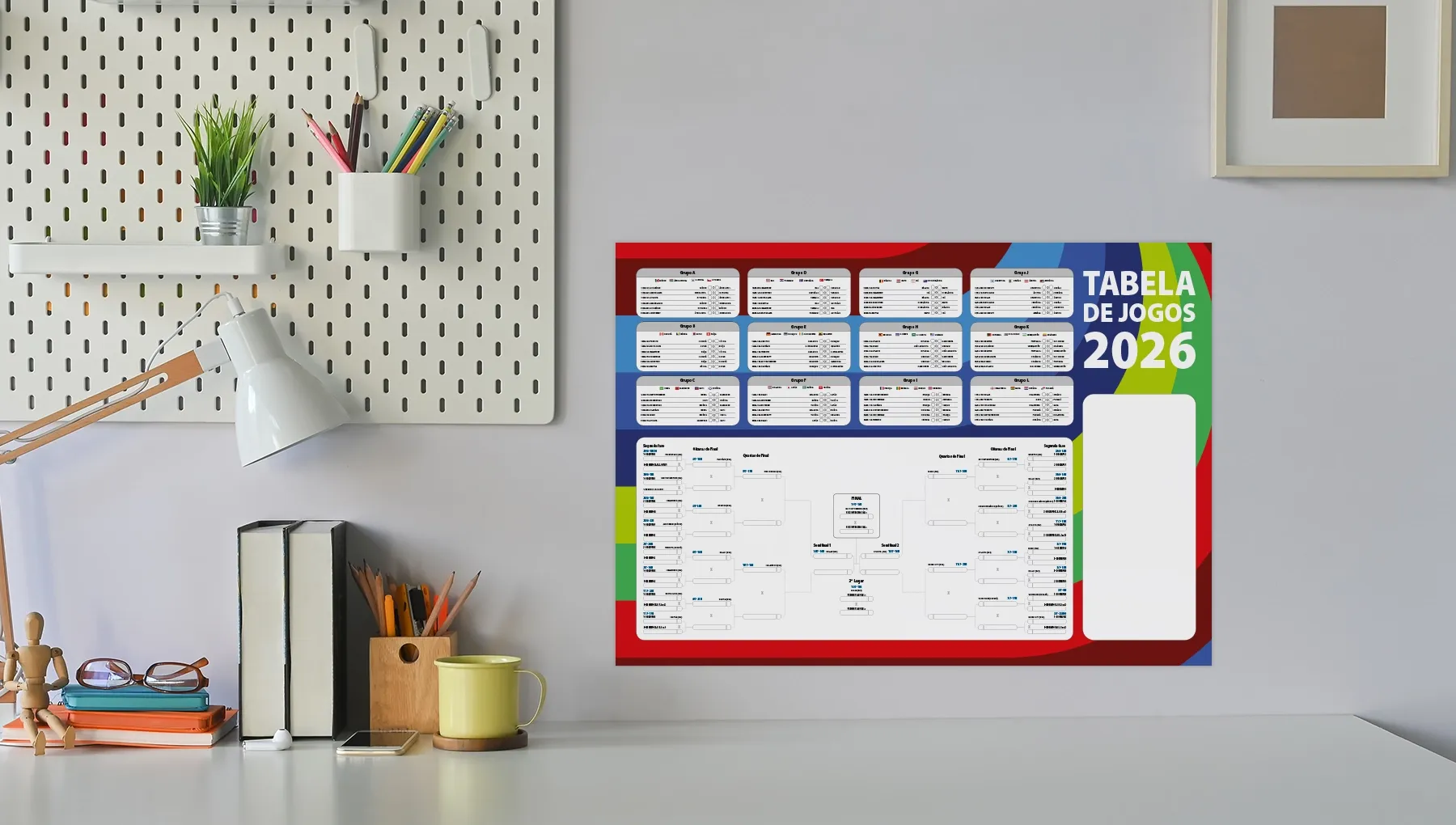 Tabela da Copa 2026 personalizada com sua marca. Ideal para campanhas promocionais e brindes em época de futebol. Envie sua arte e destaque sua empresa.