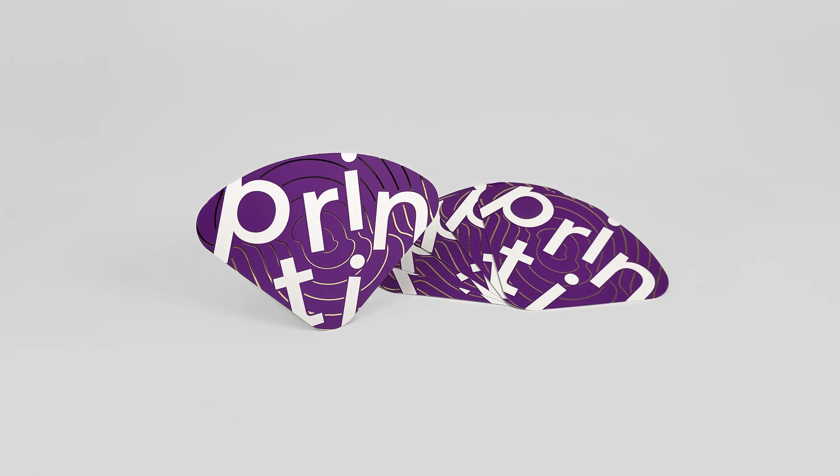O corte-vinco é o acabamento utilizado para criar o formato de leque e garantir bordas uniformes com acabamento profissional.